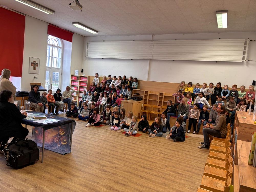 Die Schüler:innen hatten heute eine Lesung von der Kinder- und Jugendbuchautorin Karin Ammerer. Auf sehr lustige und spannende Art las sie aus ihren Detektivbüchern und Ratekrimis vor und der detektivische Spürsinn der Kinder war besonders gefragt. Sie durften selbst in die Rolle von Detektivinnen und Detektiven schlüpfen und gemeinsam knifflige Fälle lösen. Am Ende der Lesung bekam jede Klasse eine Urkunde und jedes Kind einen eigenen Detektivausweis.