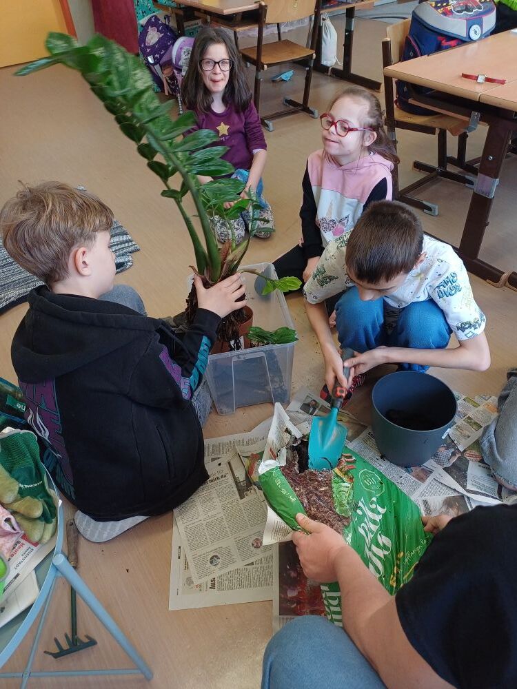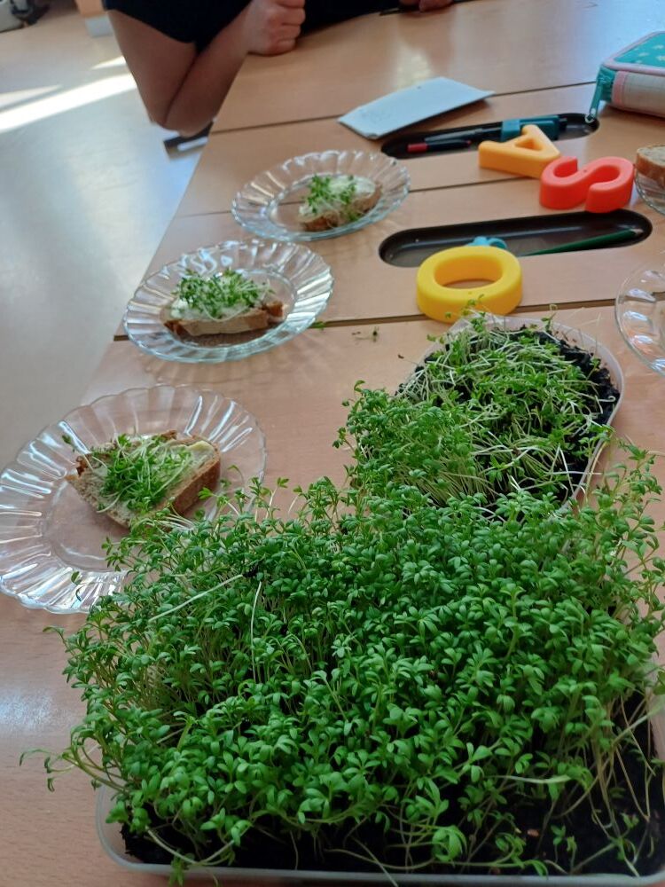 In den letzten Wochen wurde in der 2.FÖK allerhand über den Frühling gelernt. Gemeinsam wurden Kresse und Bohnen gesetzt und beobachtet (und die geerntete Kresse danach verspeist), Zimmerpflanzen umgetopft, Blumen gepresst, Frühlingsbilder gemalt und Frühlingshefte gestaltet.
