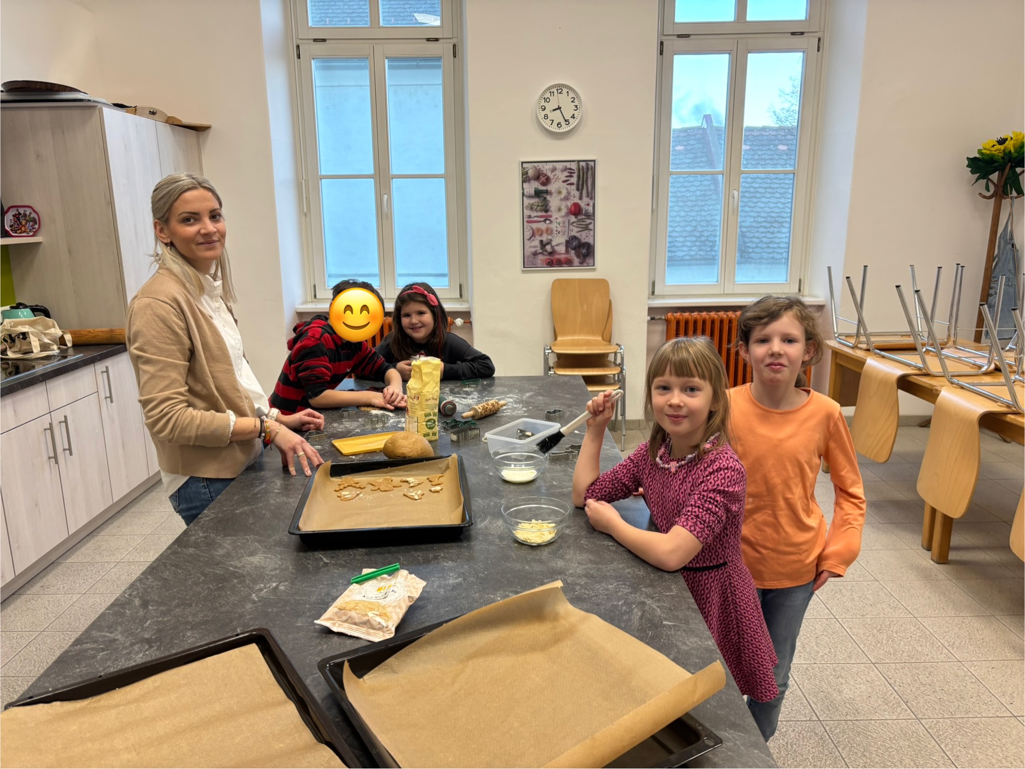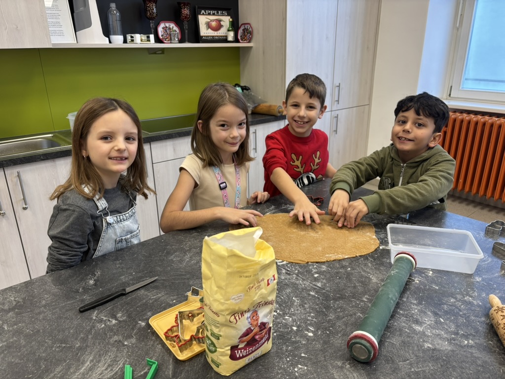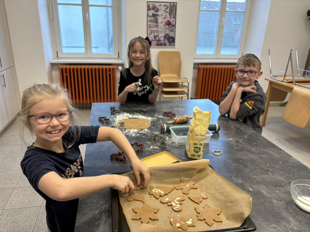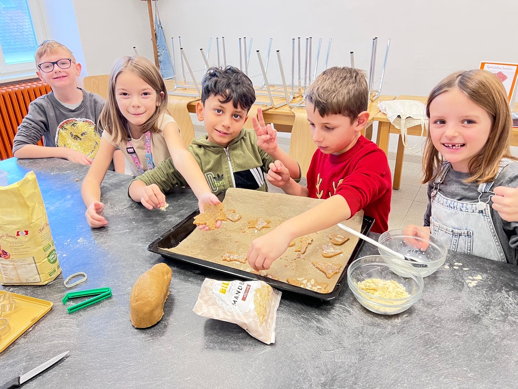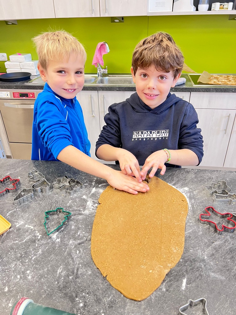 Passend zu unserer Adventgeschichte „Spekulatius, der Weihnachtsdrache“ durfte natürlich auch das Backen nicht fehlen: Mit viel Begeisterung wurden köstliche Spekulatiuskekse in Drachenform gebacken.