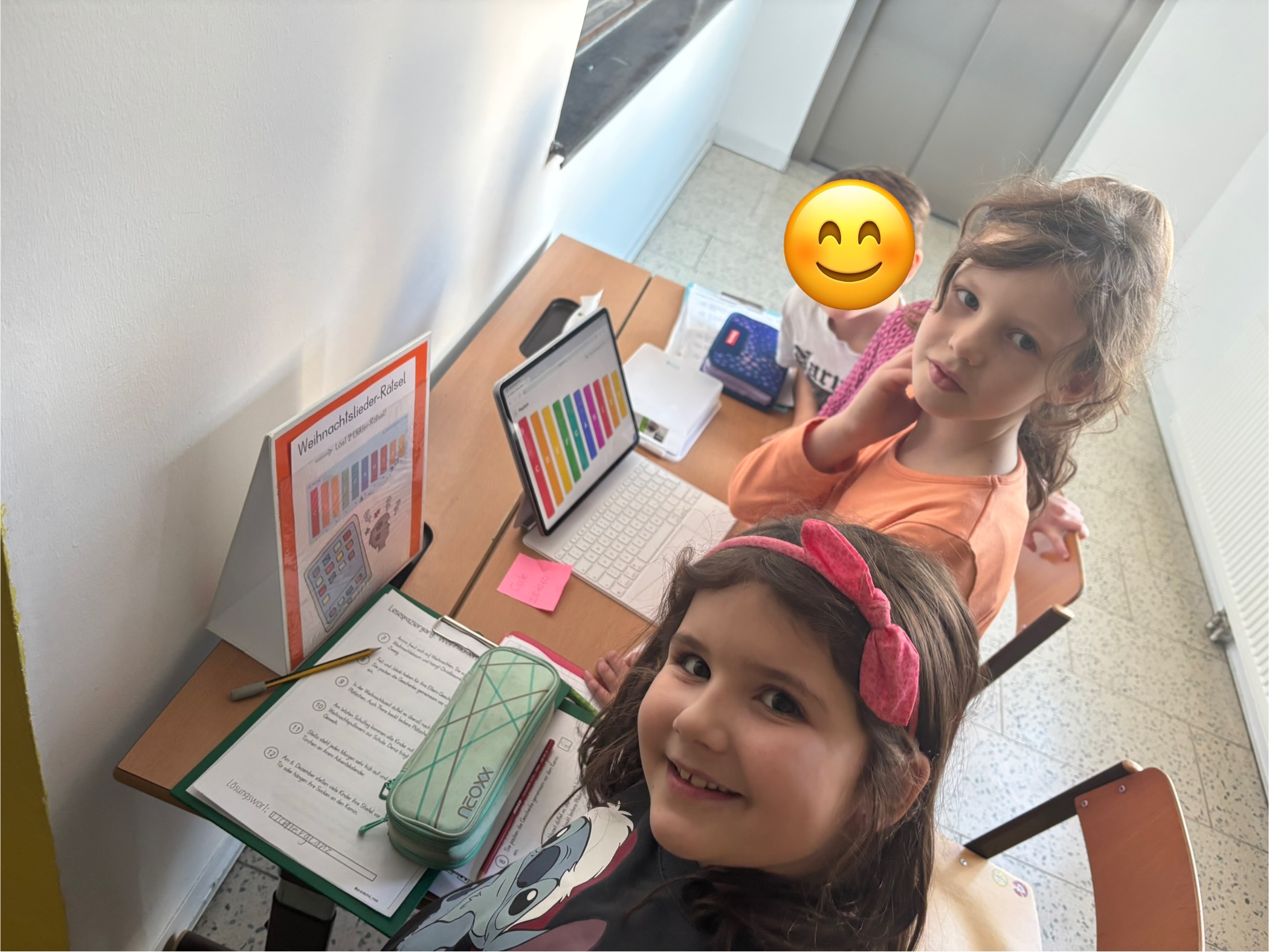 Zwischendurch setzten sich die Kinder auch schreibend mit der Weihnachtszeit auseinander und würfelten eigene lustige Weihnachtssätze.