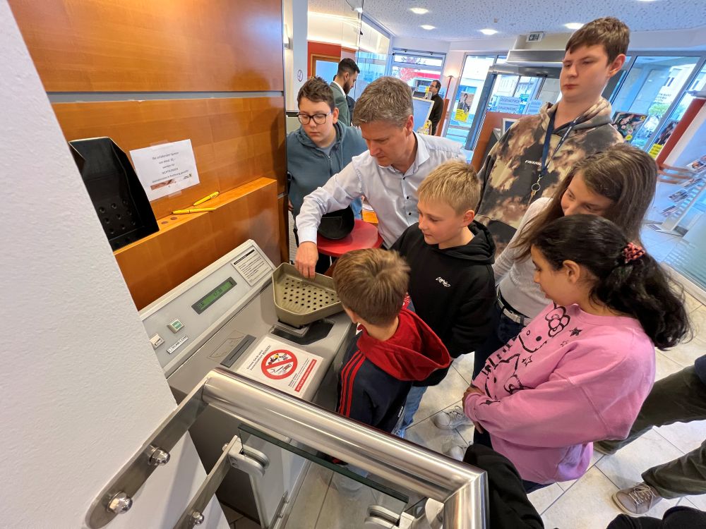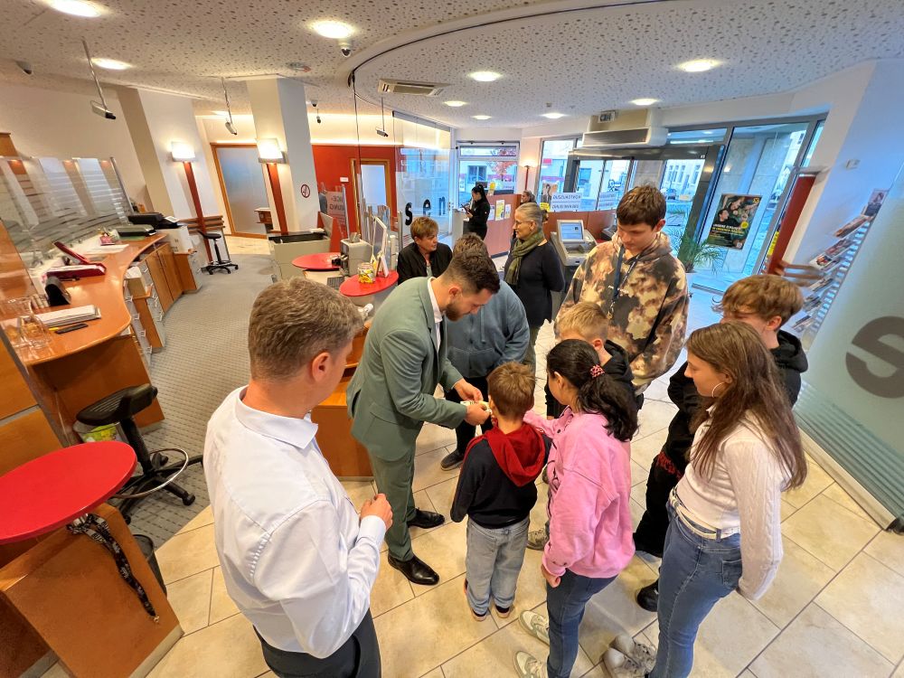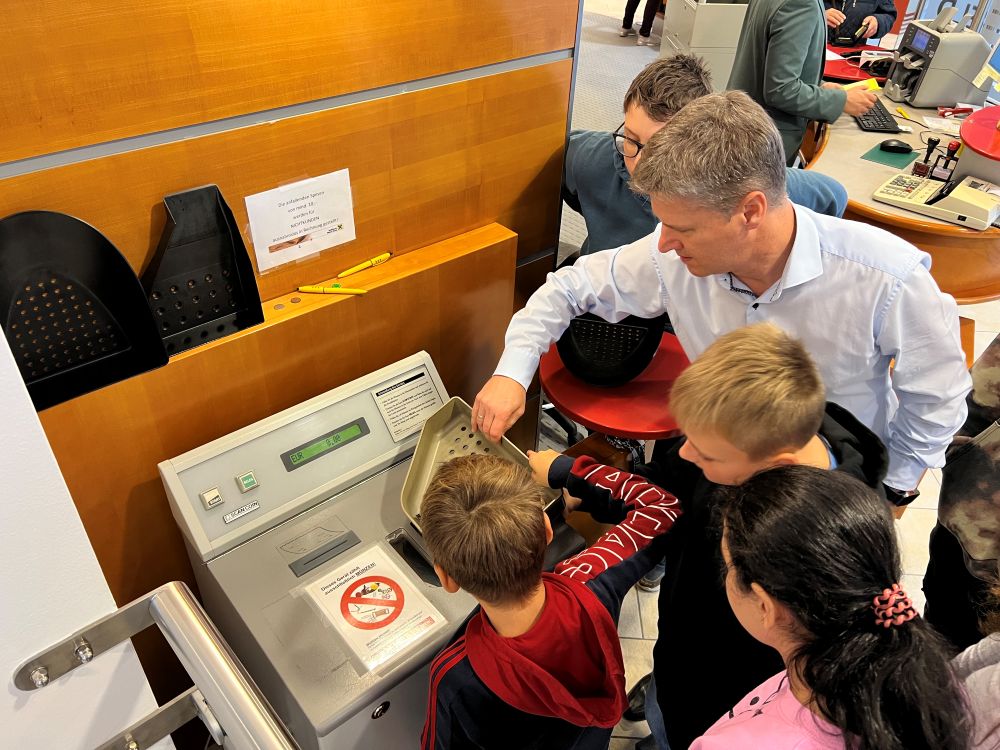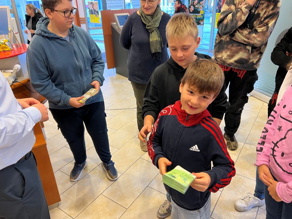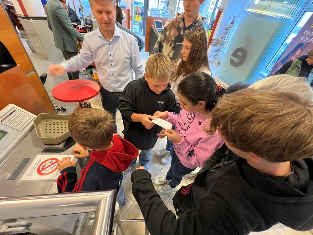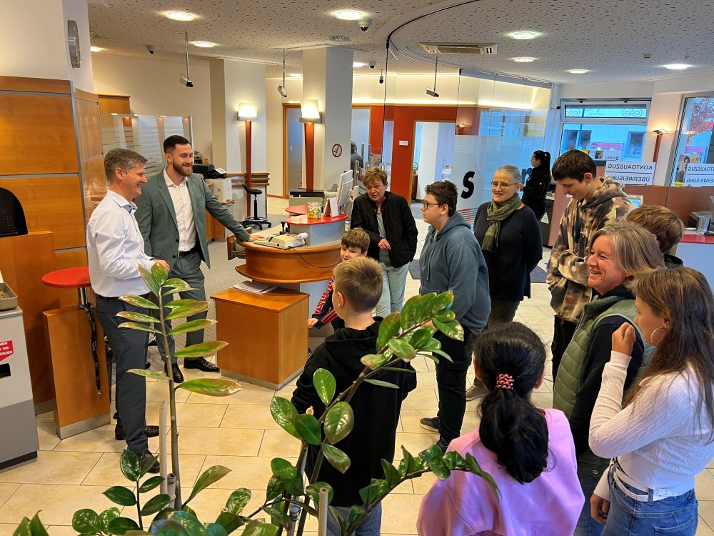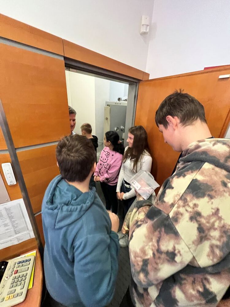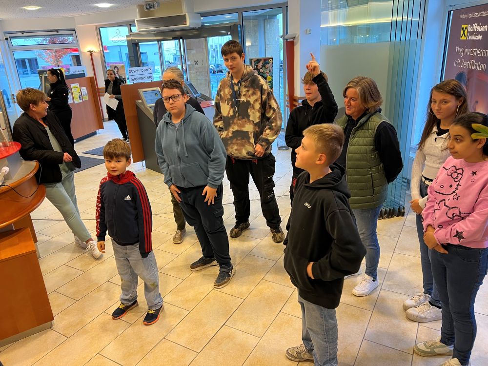 Anlässlich des Weltspartages besuchten dDie Schüler:innen der 5. & 6. Förderklasse die Raiffeisenbank in Pinkafeld. Dort durften sie Verschiedenes kennenlernen und ausprobieren. Angefangen vom Münzzähler bis hin zum Tresor der Bank. Bankstellenleiter Herr Pichlhöfer nahm sich intensiv Zeit für uns und erklärte uns, was ein Sparbuch und ein Zahlschein ist. Zum Abschluss gab es noch eine kleine Stärkung. Wir sagen herzlichen Dank